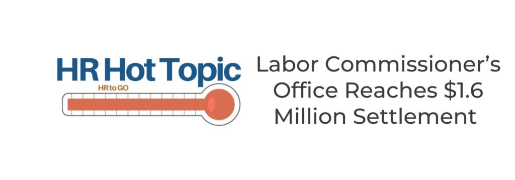 The action taken by the Labor Commissioner’s office should be a caution to all employers regarding the importance of compliance with wage and hour laws. We will continue to provide further guidance regarding developing HR-related news. Should you have any questions, please contact our office at 916.444.6200, info@hrtogo.com, or your HR Consultant directly.
